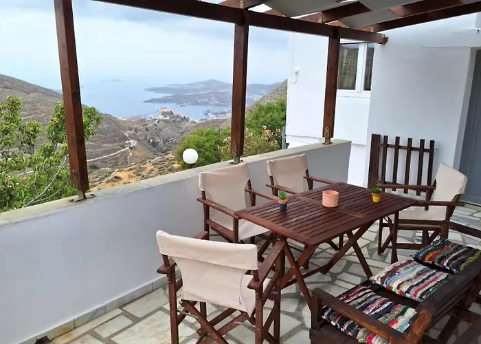 Die 1-Zimmer- Leonardo'S Home Cycladic Cottage verfügt über eine sonnige Terrasse mit Blick aufs Meer und ist 15 Autominuten vom Flughafen Syros entfernt gelegen.
